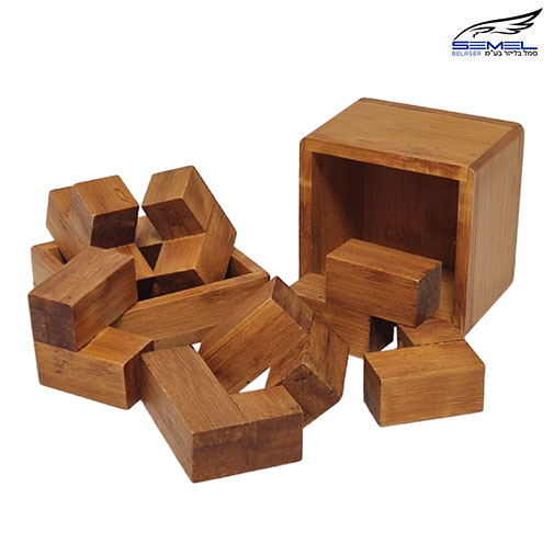משחק חשיבה יצרתי ומאתגר עשוי עץ במבו איכותי במיוחד.מטרת המשחק לבנות קובייה מ-7 חלקים שונים.8.6X8.6X8.6 ס”מ.